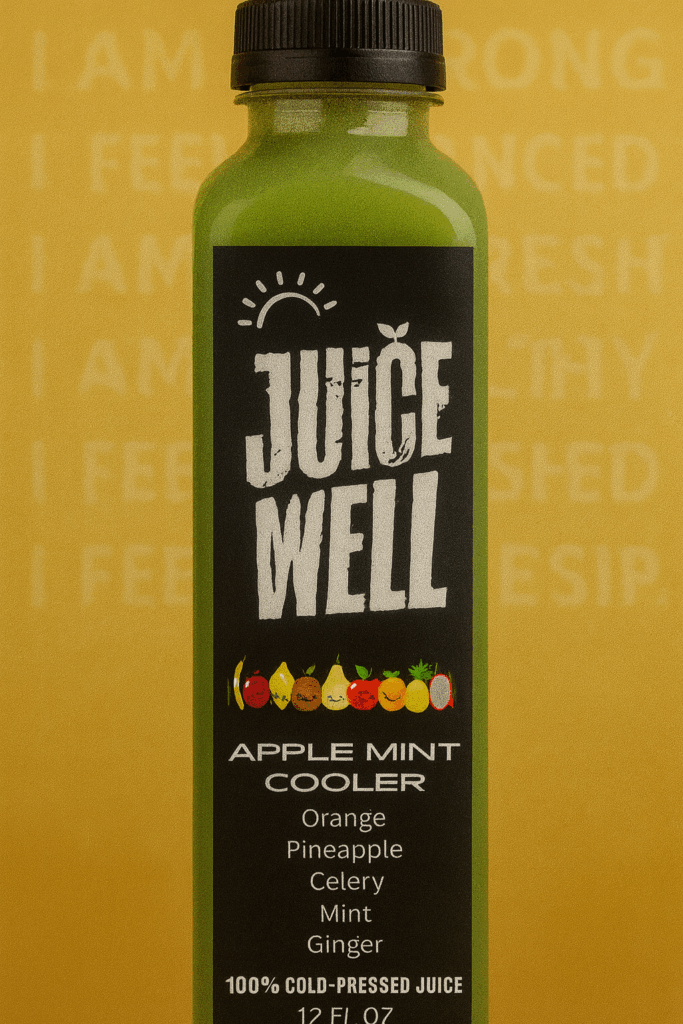 Green Apple • Pineapple • Celery • Mint Cooling, hydrating, soothing for digestion, fresh and energizing.